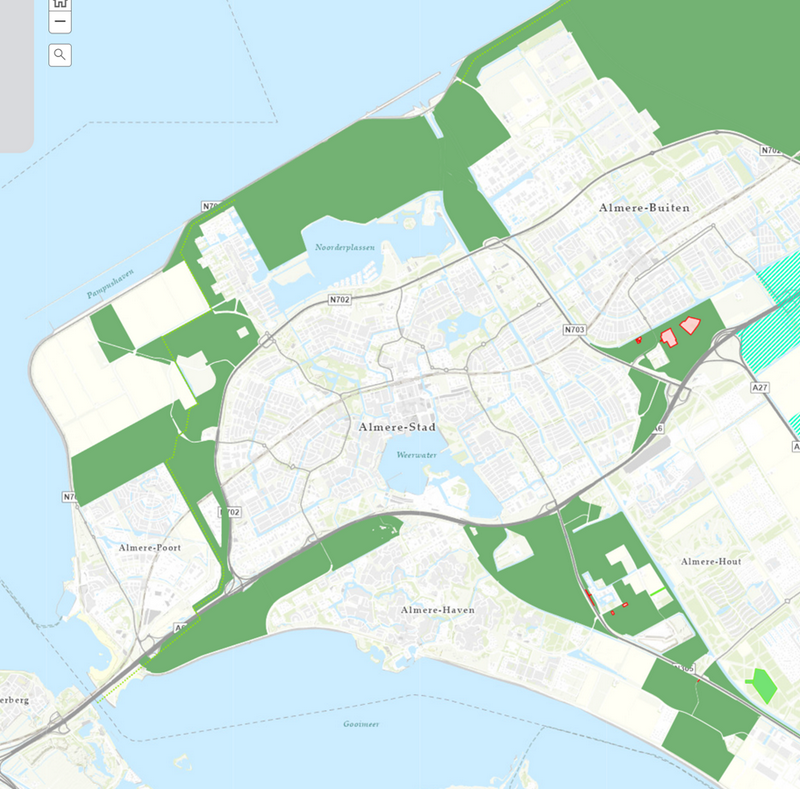 Wat is er vanuit de Nota nu overgenomen naar de uitvoeringsagenda voor de Almeerse hengelport? Eigenlijk niet zoveel. Zoals al eerder aangekondigd gaat men nu een onderzoek opstarten naar het verruimen van hengelsportvrije zones in het Natuurnetwerk Nederland (groen op kaartje onderaan het bericht).