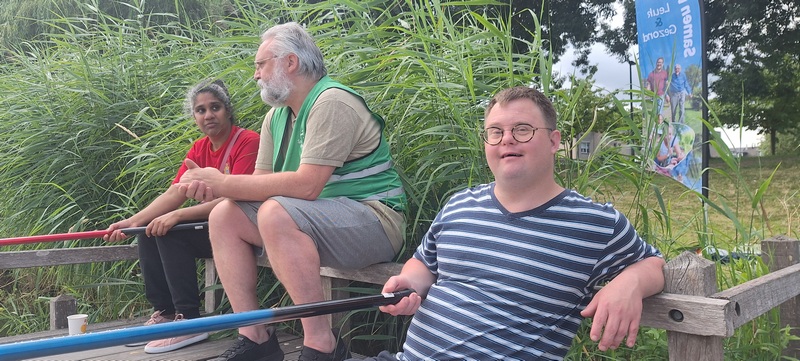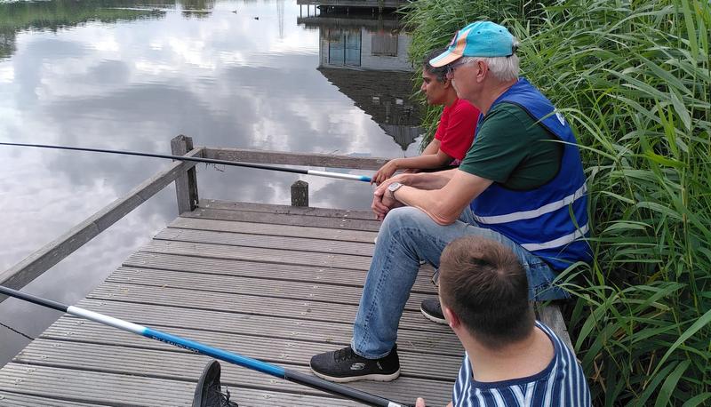 Op zondagmorgen 13 juli waren de vrijwilligers van “Vissen met Derk” weer aanwezig om middels het concept “Samen Vissen” van Sportvisserij Nederland de cliënten van woonvoorziening Paladijn weer een leuke visochtend te bezorgen. Het zou vandaag mooi weer worden en dat is sowieso altijd wél zo prettig met dit soort acties. We waren deze keer bovendien in de unieke situatie dat we meer vrijwilligers dan cliënten hadden door diverse oorzaken maar eigenlijk was dat ook wel eens een keertje prettig omdat dit de vrijwilligers de mogelijkheid gaf om even lekker een beetje bij te praten.