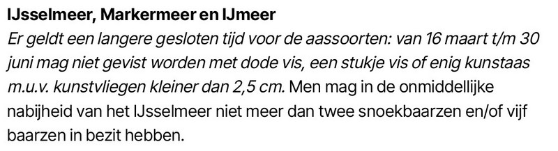 Hou er bovendien rekening mee dat Dropshot vissen met worm óók op deze wateren in de bovengenoemde periode NIET toegestaan is.